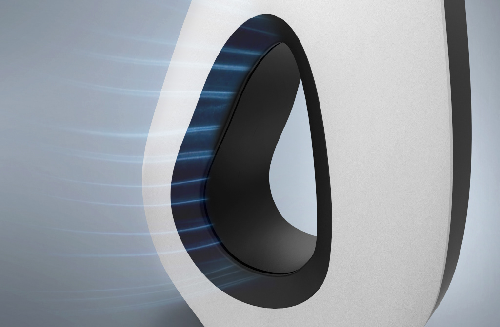 Umístění zařízení je vhodné na polici či skříň nad úroveň podlahy, tak aby byla umožněna správná cirkulace vzduchu. Tomu napomáhají malé rozměry a váha. Prostor pro uchopení v prstenci uprostřed těla usnadňuje manipulaci a transport. Ovládací prvky jsou umístěny na předním krytu zařízení ve formě podsvícených ikon s dotykovým čidlem.